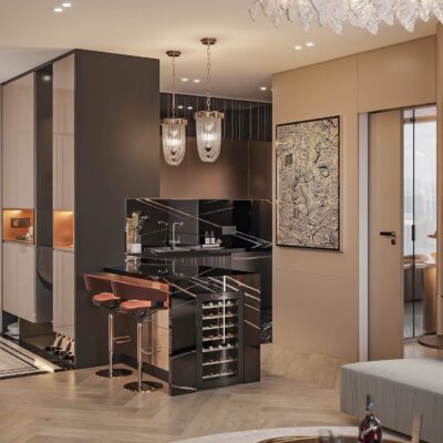 Căn hộ được thiết kế như một bản giao hưởng của sắc độ, ánh sáng và vật liệu – nơi mọi chi tiết đều hướng đến sự tinh giản nhưng đạt đến độ hoàn mỹ.