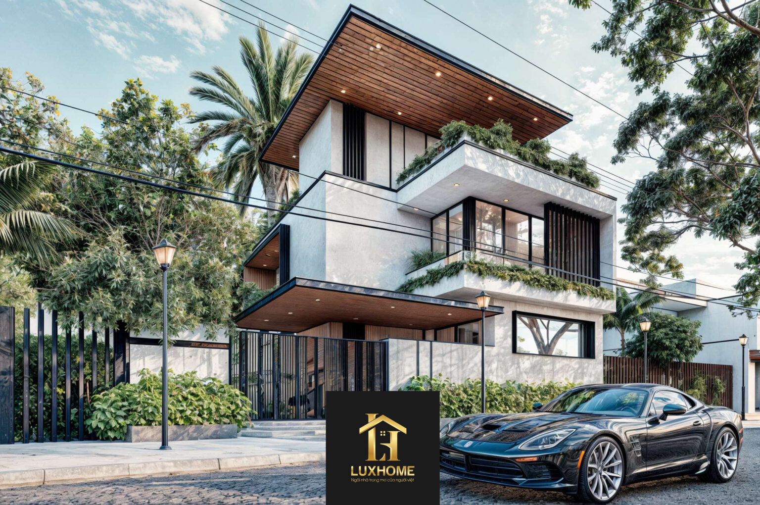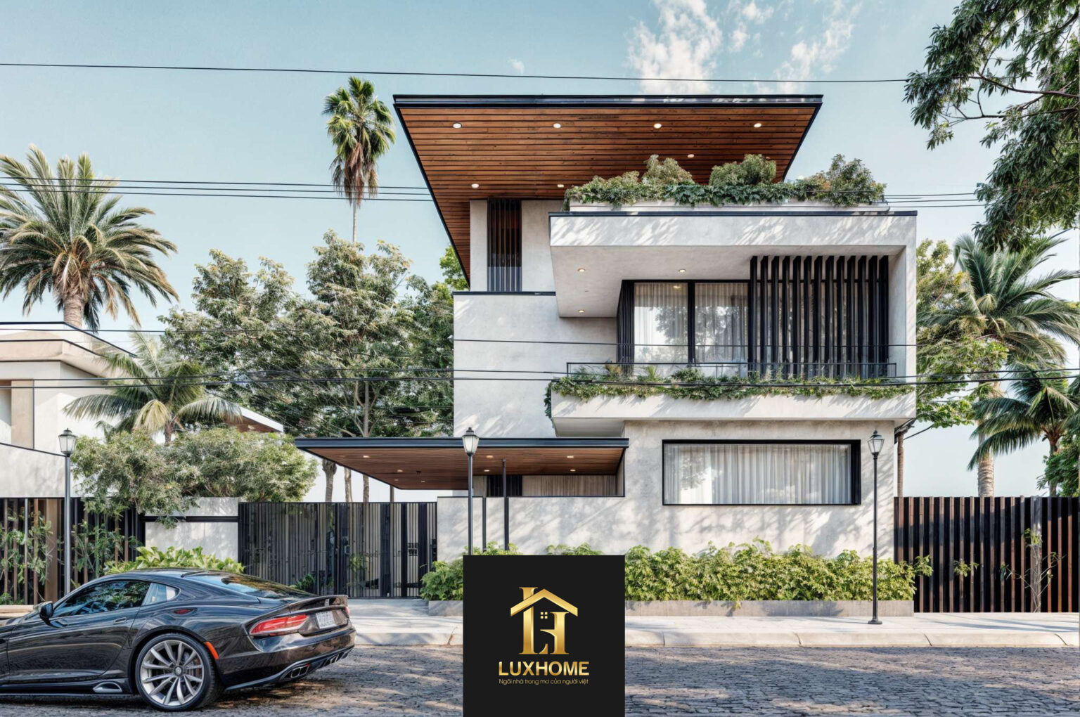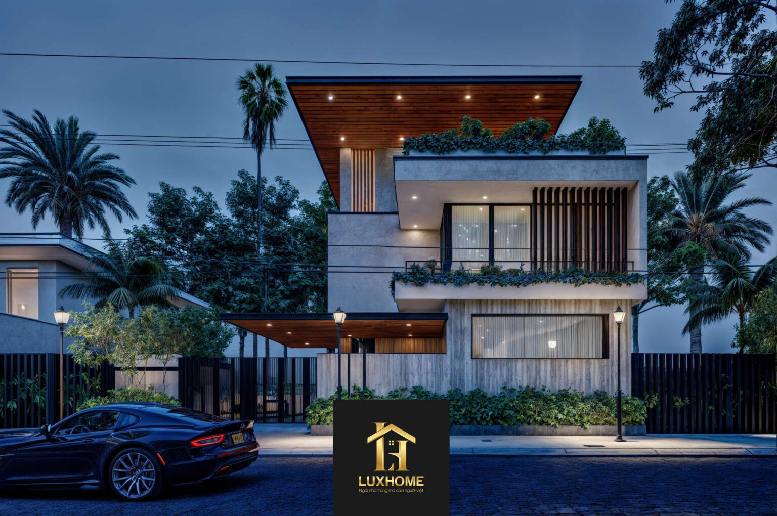 Với mong muốn tạo nên một không gian sống vừa hiện đại vừa gần gũi, Luxhome đã lựa chọn lối kiến trúc tối giản nhưng tinh tế cho dự án này. Các hình khối được thể hiện mạnh mẽ, dứt khoát, kết hợp cùng chất liệu gỗ tự nhiên, kính cường lực và những mảng tường bê tông mộc mạc, vừa mang đến cảm giác trẻ trung, vừa tạo độ bền vững theo thời gian.