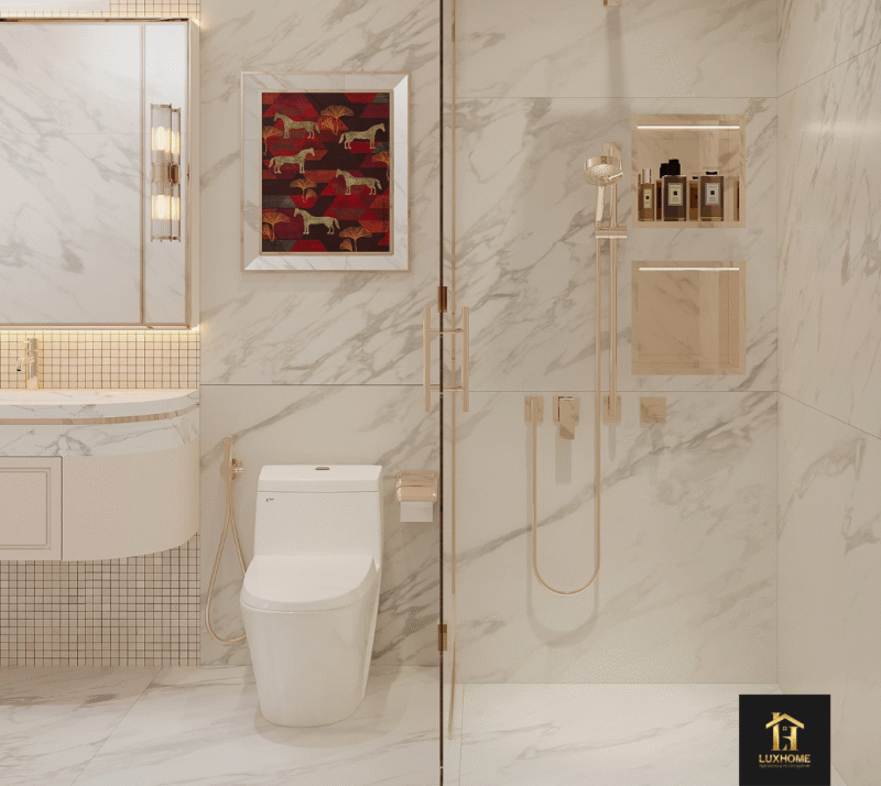 Thiết kế, bày trí nội thất trong khu vực phòng tắm của biệt thự