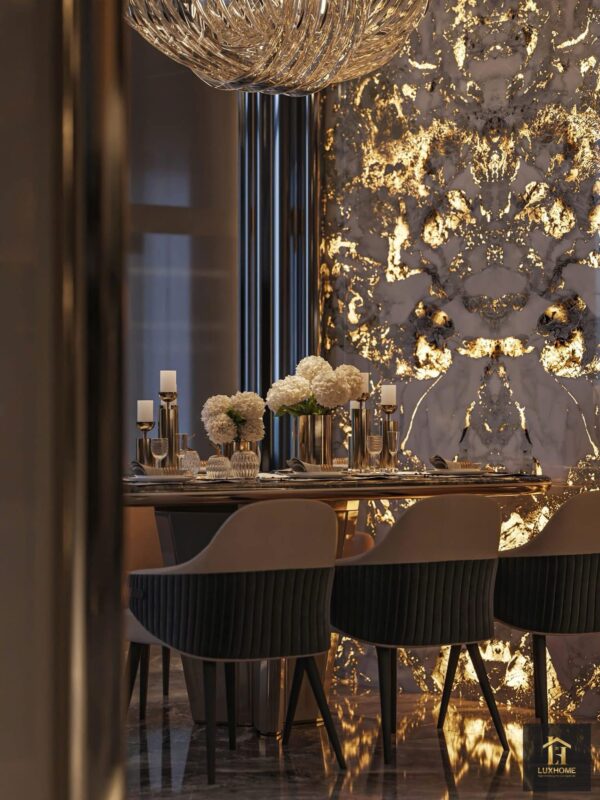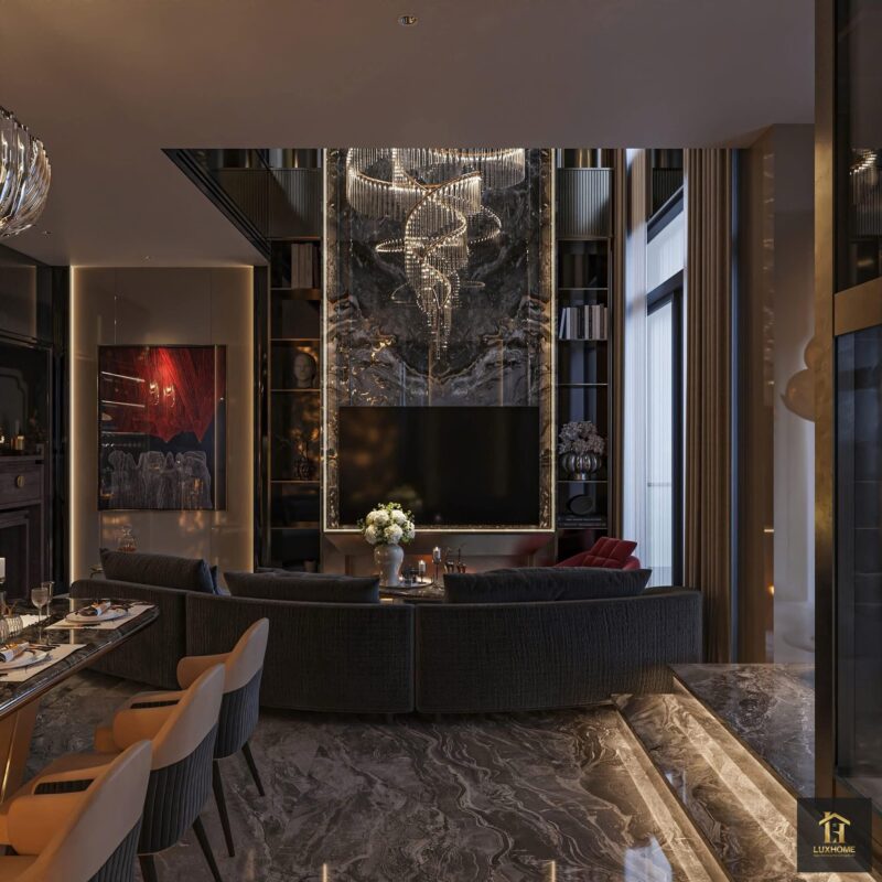 Phong cách biệt thự Luxury sang trọng đang là xu hướng thiết kế được nhiều gia đình ưa chuộng. Thiết kế này thể hiện được sự đẳng cấp cũng như cá tính của gia chủ. Điểm nổi bật của biệt thự Luxury là sử dụng các vật liệu cao cấp như đá cẩm thạch, pha lên,… Màu sắc thường sử dụng là màu trầm, kết hợp nội thất tinh xảo và thiết kế có điểm nhấn. Nội thất trong nhà được thiết kế vô cùng chi tiết và tỉ mỉ với những đường nét hoa văn tinh xảo. Bên cạnh đó, hệ thống ánh sáng cũng vô cùng lung linh.
