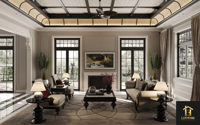 Thiết kế nội thất trong khu vực phòng khách của biệt thự